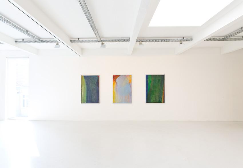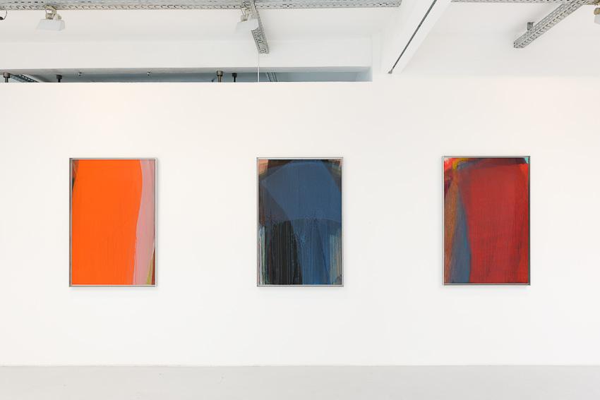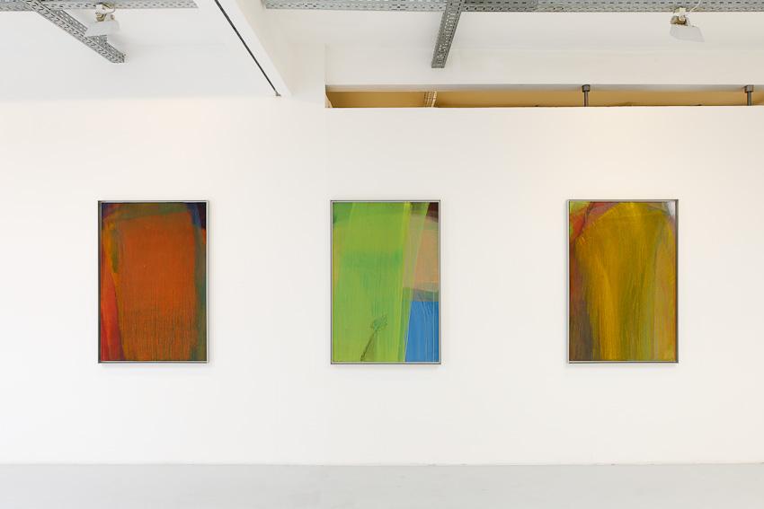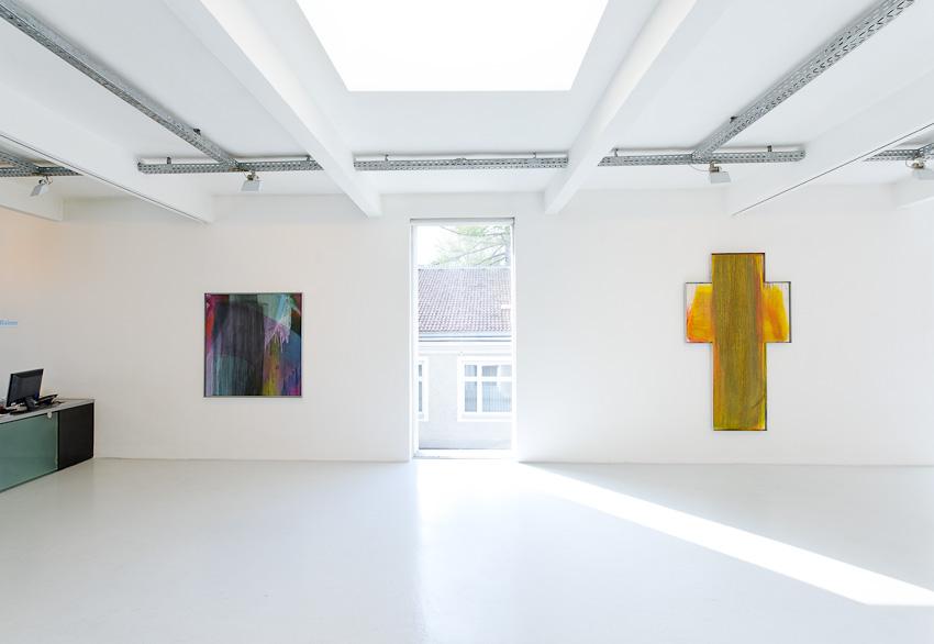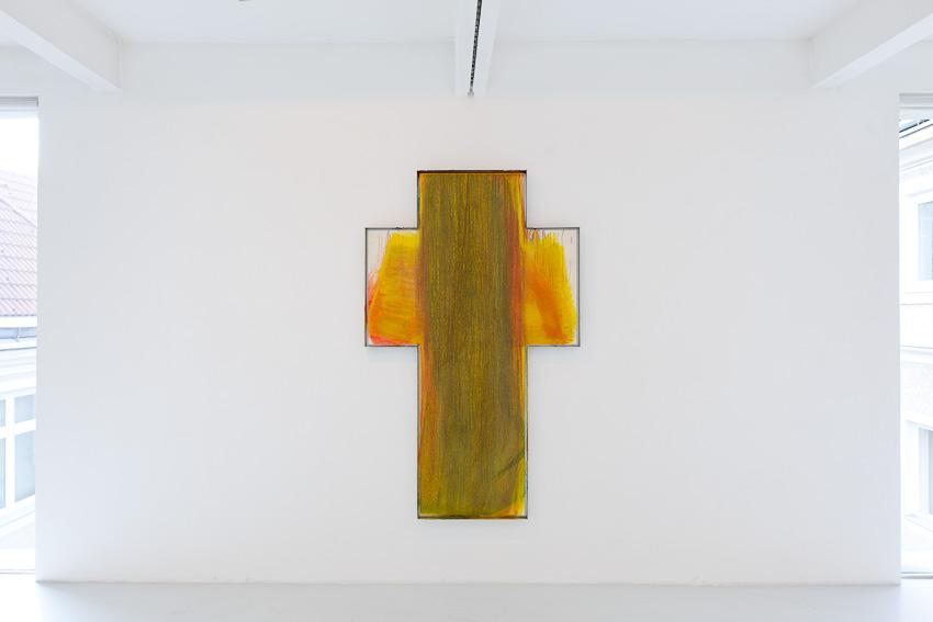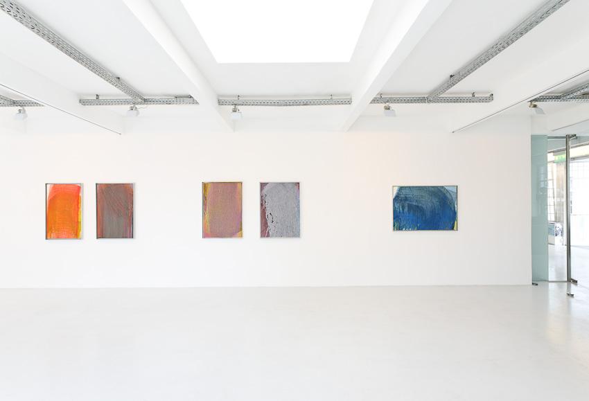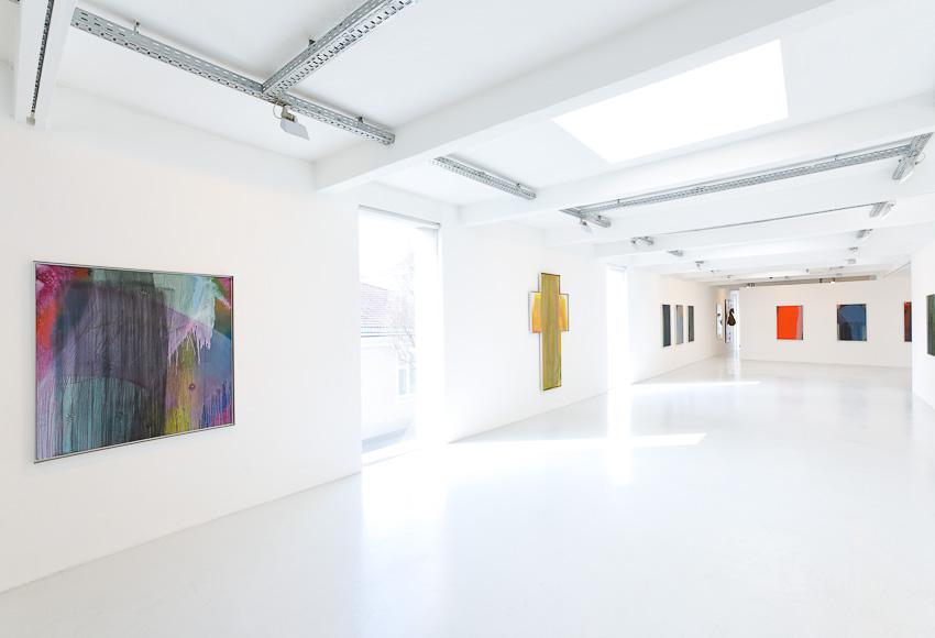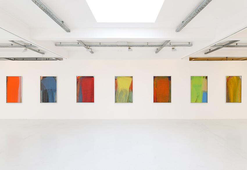 In our new exhibition we present paintings from the late nineties not shown in public before – Schleierbilder (veiled pictures) and Blattmalereien (leaf paintings) are confronted with Microcosm/Macrocosm as well as new Hand and Finger Paintings. While the first are painted directly onto the open-pored wooden panel in thin, scumbled layers of paint, thus merging with the latter to form transcendently luminous bodies of colour, the latter, through liquid paint on a porous and napped, perforated and scratched painting surface, build up into a softly gleaming, velour-like texture or bear gentle caresses of colour, applied by the artist’s hand on a white base, or else pastose and dark-in-dark, wildly expressive mounds of paint. ‘Rainer’s painting, since the nineteen-fifties, has unfolded in a dialectic tension between the poles of a gentle, meditative application of paint and a physically powerful expressiveness. His method of the slow painting-over, that often leads to almost monochrome paintings, forms a contrast to the gestural and body-related work series, produced at great speed, such as the Finger Paintings or the Face Farces.’