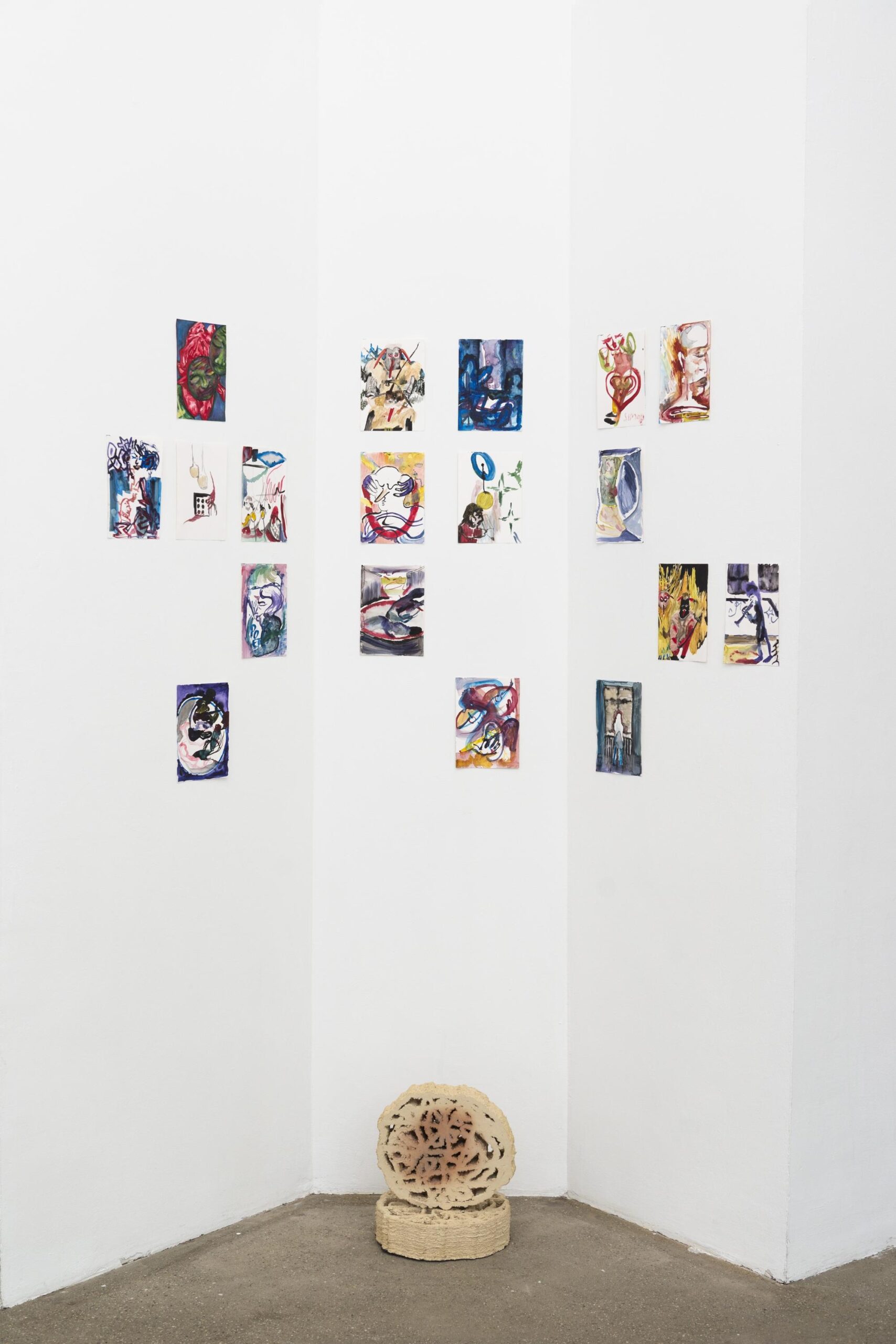 The exhibition And When I See A Ghost I Really See A Ghost questions and decenters this notion. The artists on view do not treat painting as a self-contained object but as a relational field – a processual formation in which subjectivity, materiality, and space become unstable and permeable. Instead of unified authorship, what emerges is a fragmented, shared, at times indeterminate structure of artistic production. The artwork is no longer understood as the manifestation of an autonomous subject, but as an interface between economic, ethical, social, and aesthetic parameters.