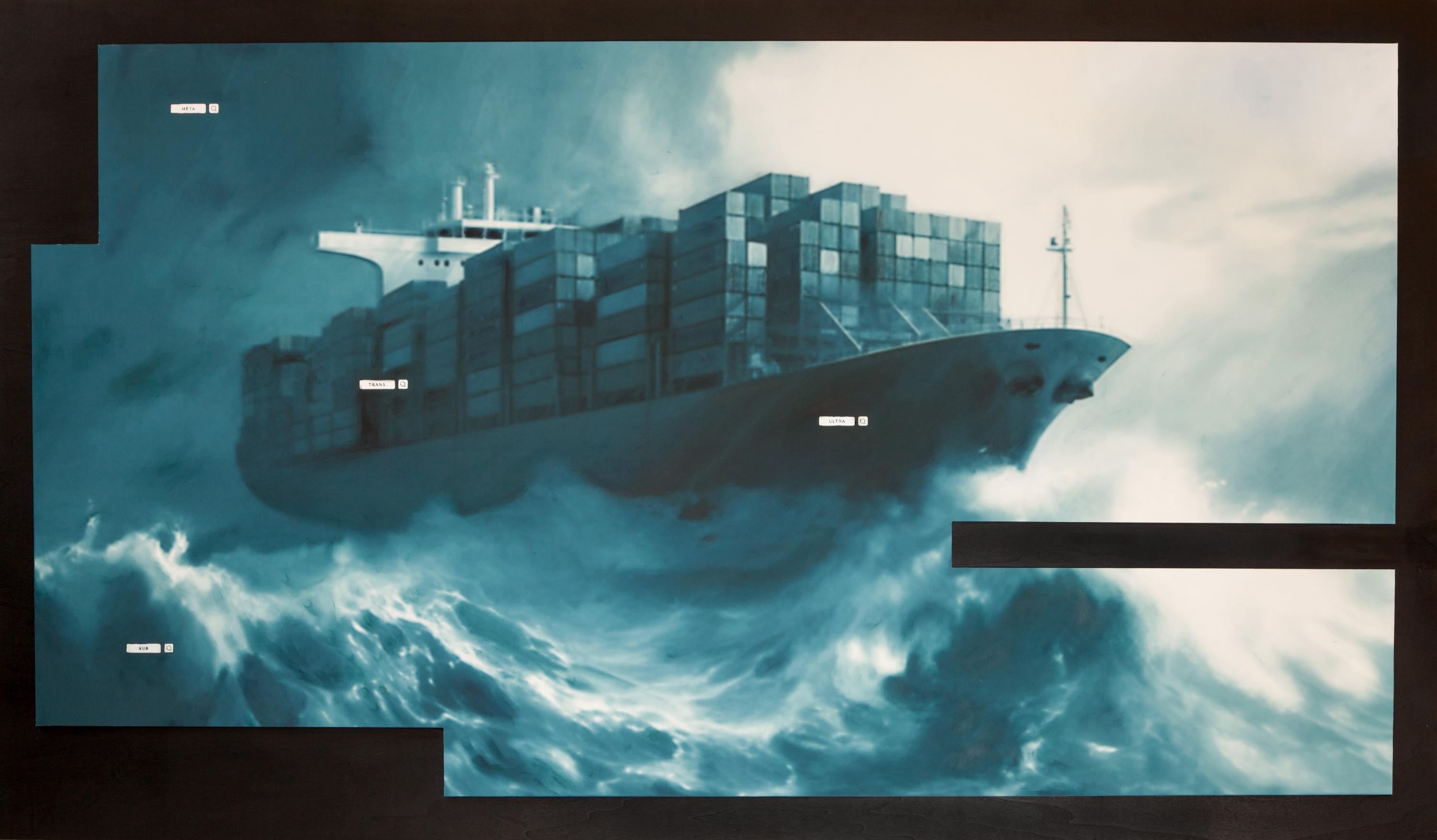 As part of the VILLA KARBACH exhibition, Thomas Feuerstein is showing the newly created multi-part installation “ULTRAMARINA. Drinking up the lake” (2014) in the former workshop building on the lakeshore in Karbach. In the light blue flooded exhibition space ULTRAMARINA, green and diatom algae grow in the sculpture POLYPHORE. ULTRAMARINA brings together an ensemble of sculptures, pictures and objects. Here, diatoms from Lake Traunsee and limestone from local mines will be processed into a new pigment. A process developed by biologist and chemist Thomas Seppi for the exhibition forms the basis for the chemical synthesis of “Traunsee blue”. The color pigment, based on substances that all occur locally in Karbach, varies like the lake between bright ultramarine, turquoise, green and ash gray. In a nod to the history of science and art, the process has been registered with the Austrian Patent Office. “Traunsee blue” refers to the first historical patent in Germany by Johannes Zeltner (patent specification no. 1, 1877), which was granted for the chemical production of ultramarine as a substitute for lapis lazuli, as well as to Yves Klein’s IKB.